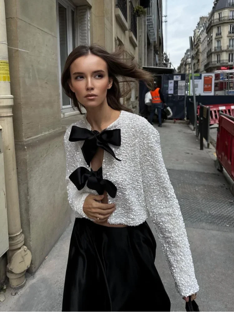Bella | Women's Longsleeve Glitter Bow Top