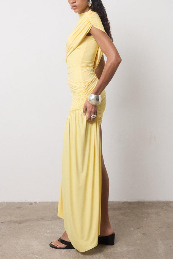 Jenna | Women's High Neck Ruched Draped Mini Dress